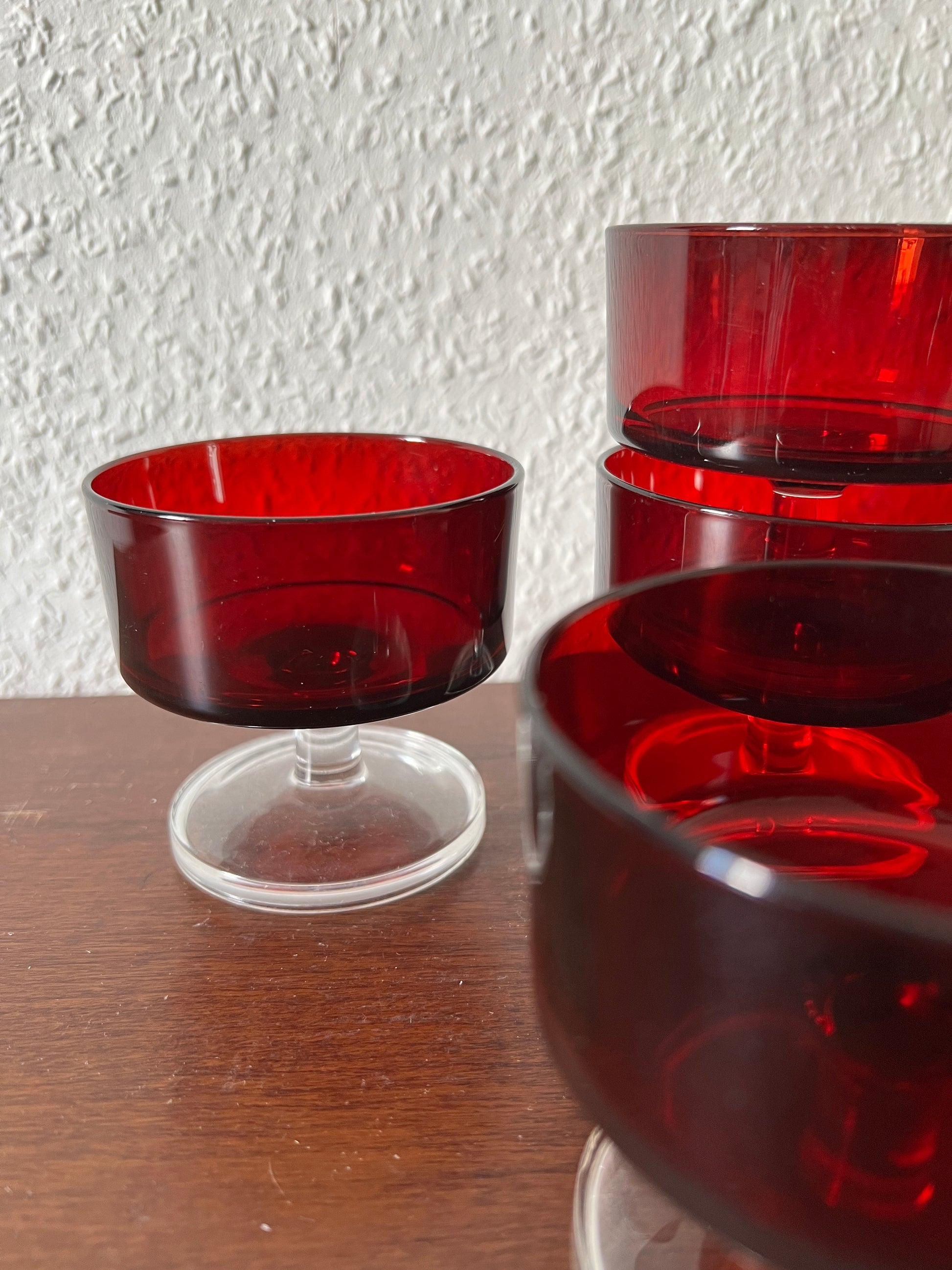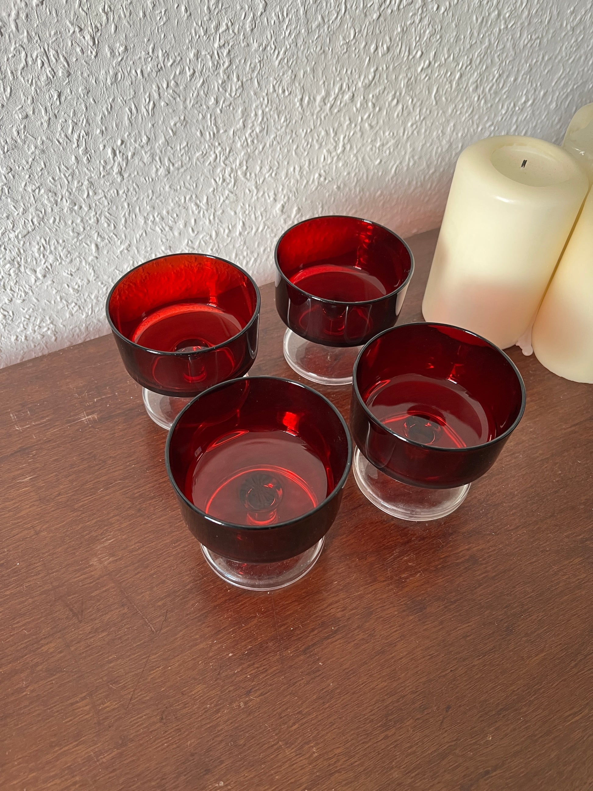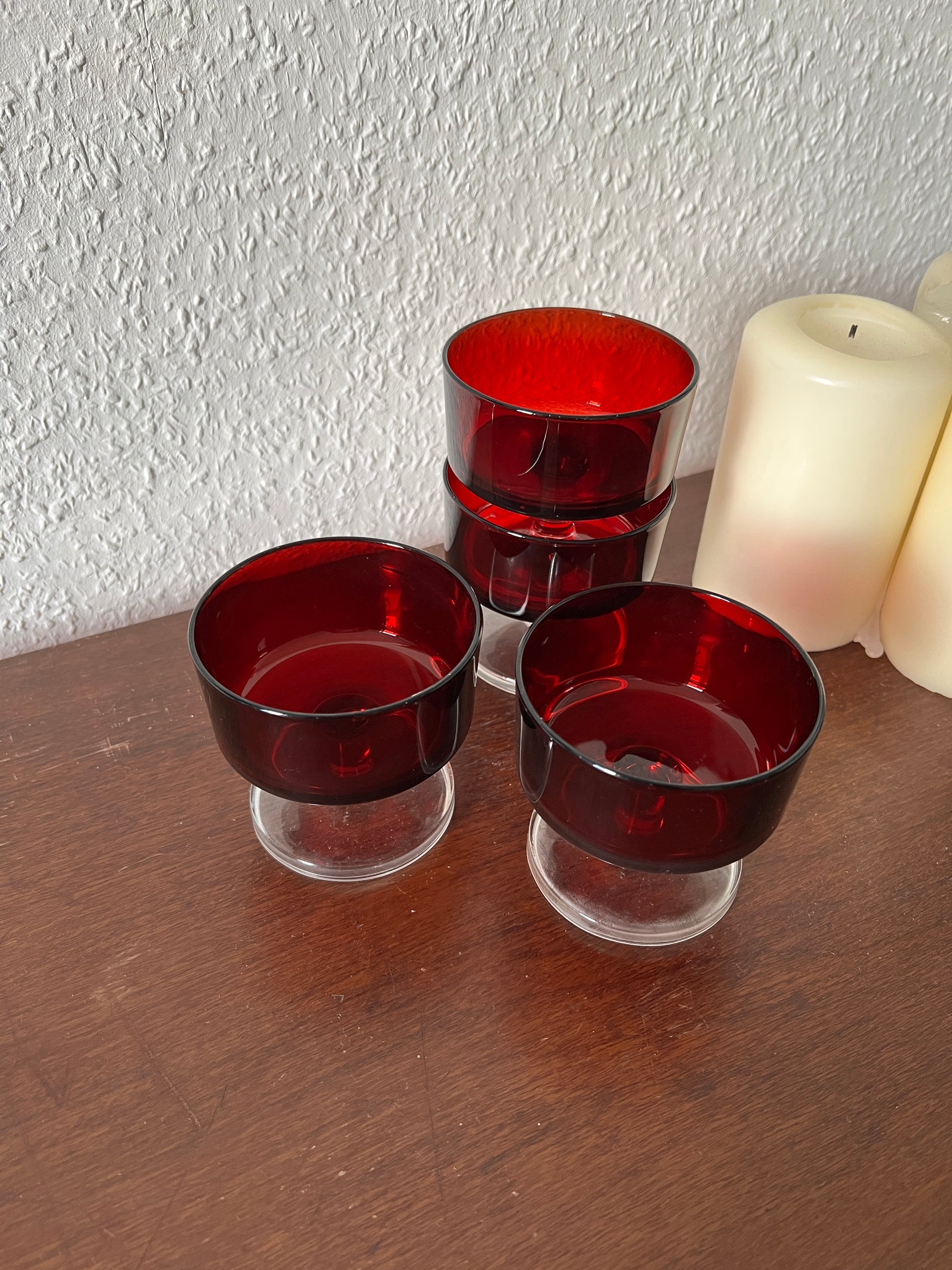 Set of 4 Luminarc Arcoroc France glasses champagne dessert bowls red