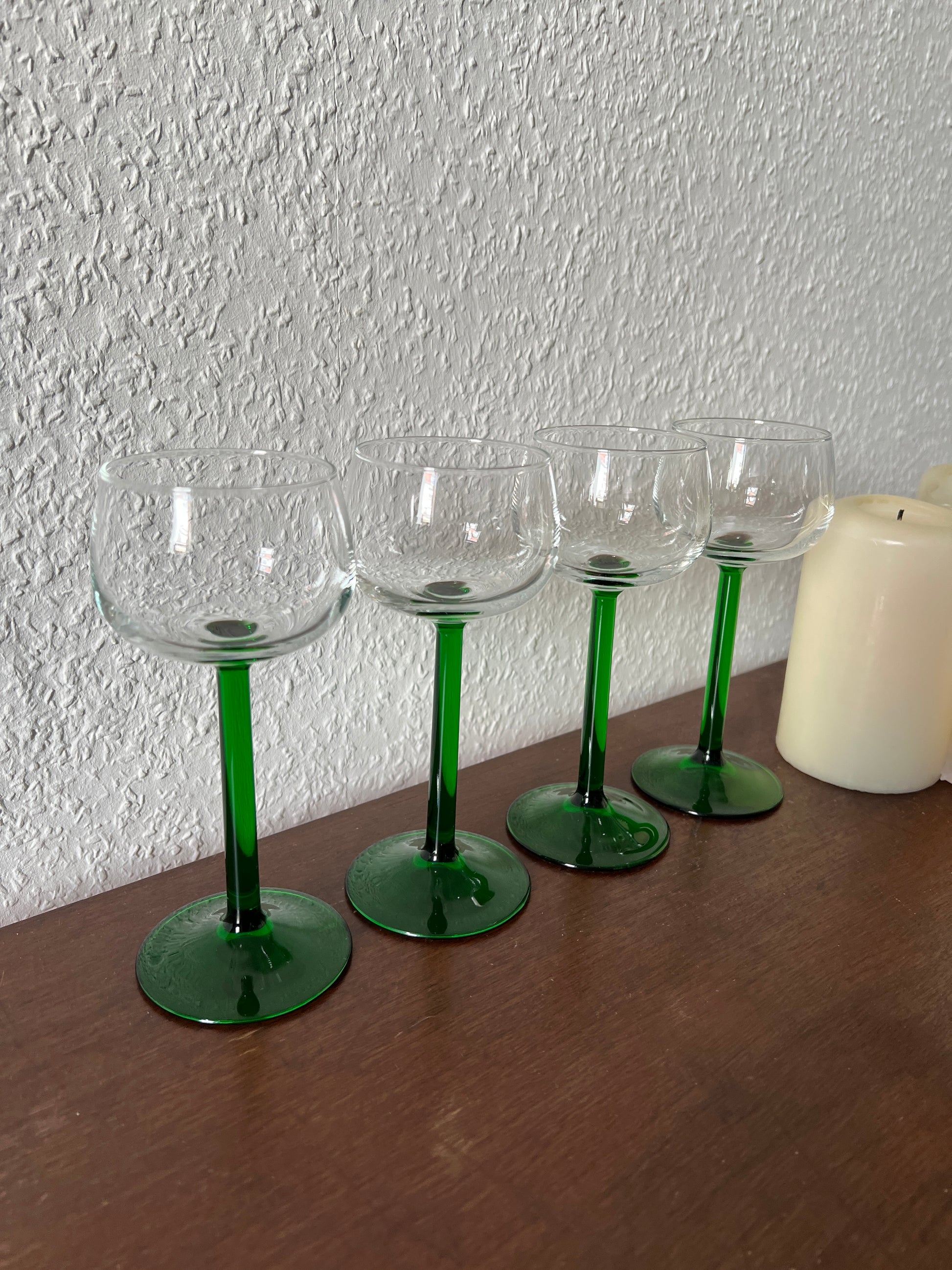 Set of 4 Luminarc France Emerald Green Stem White Wine Glasses MCM 1980s