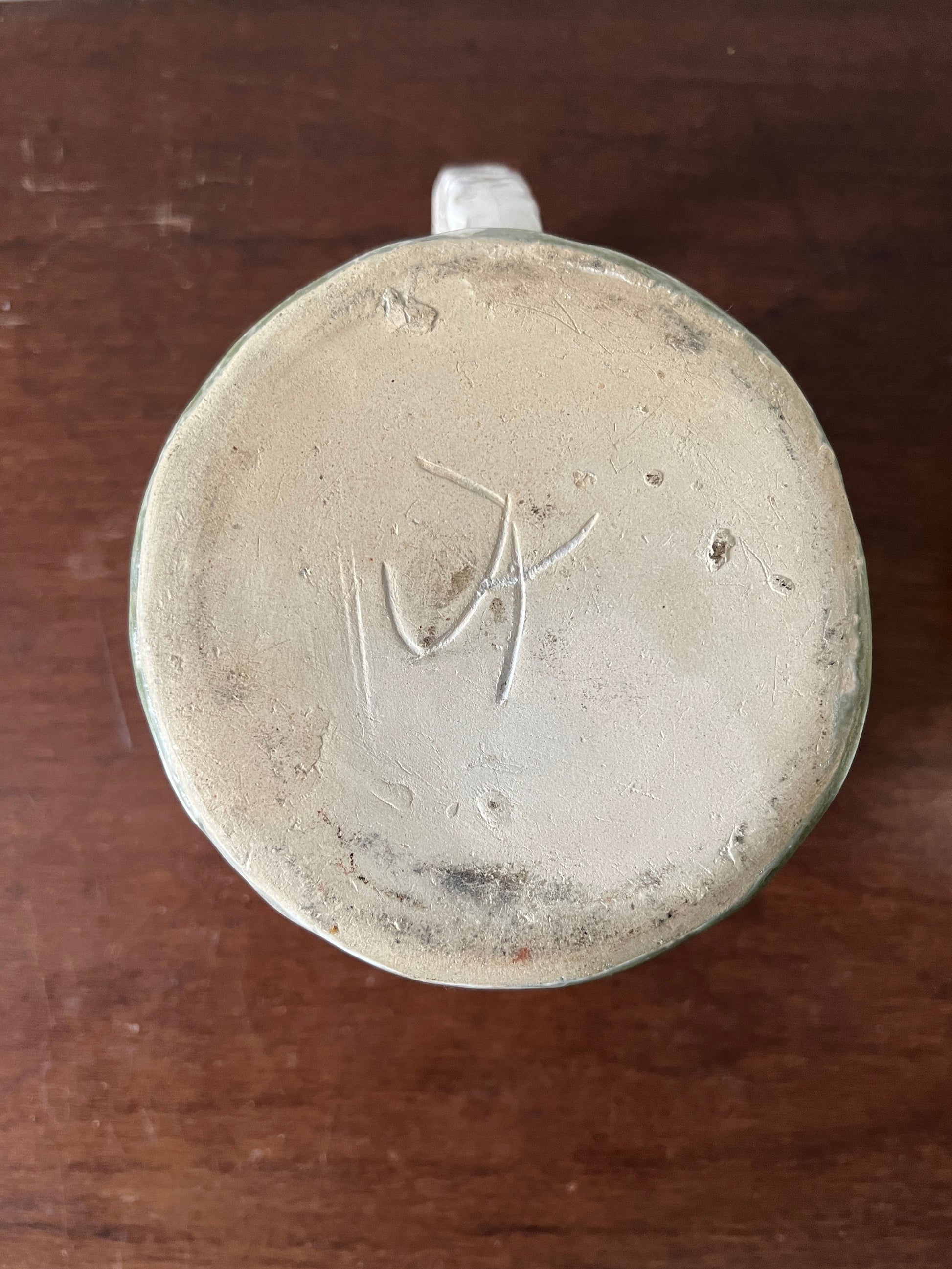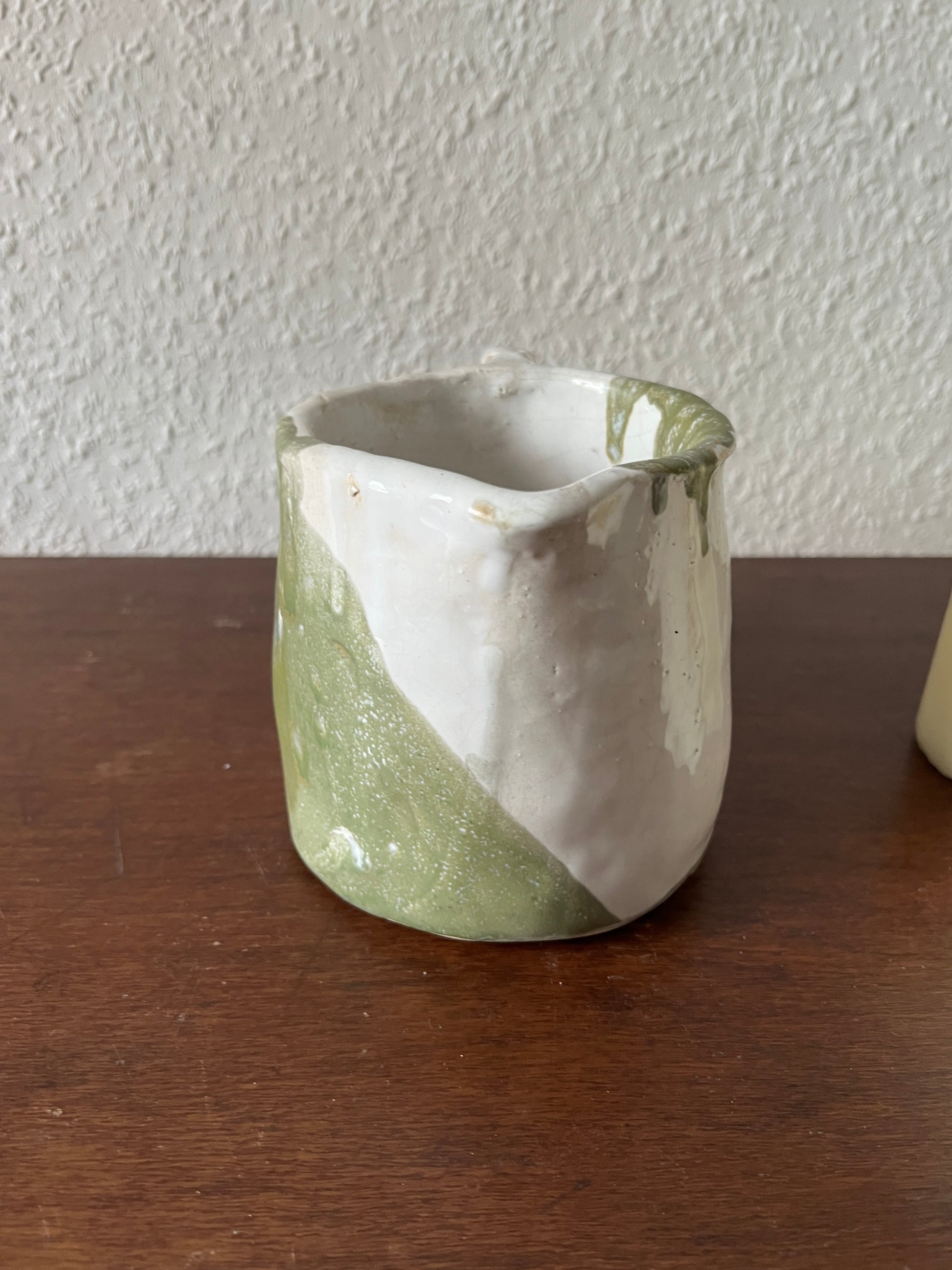 Jug Ceramic White Green Vase Flowerpot Handmade ("JK") Vintage