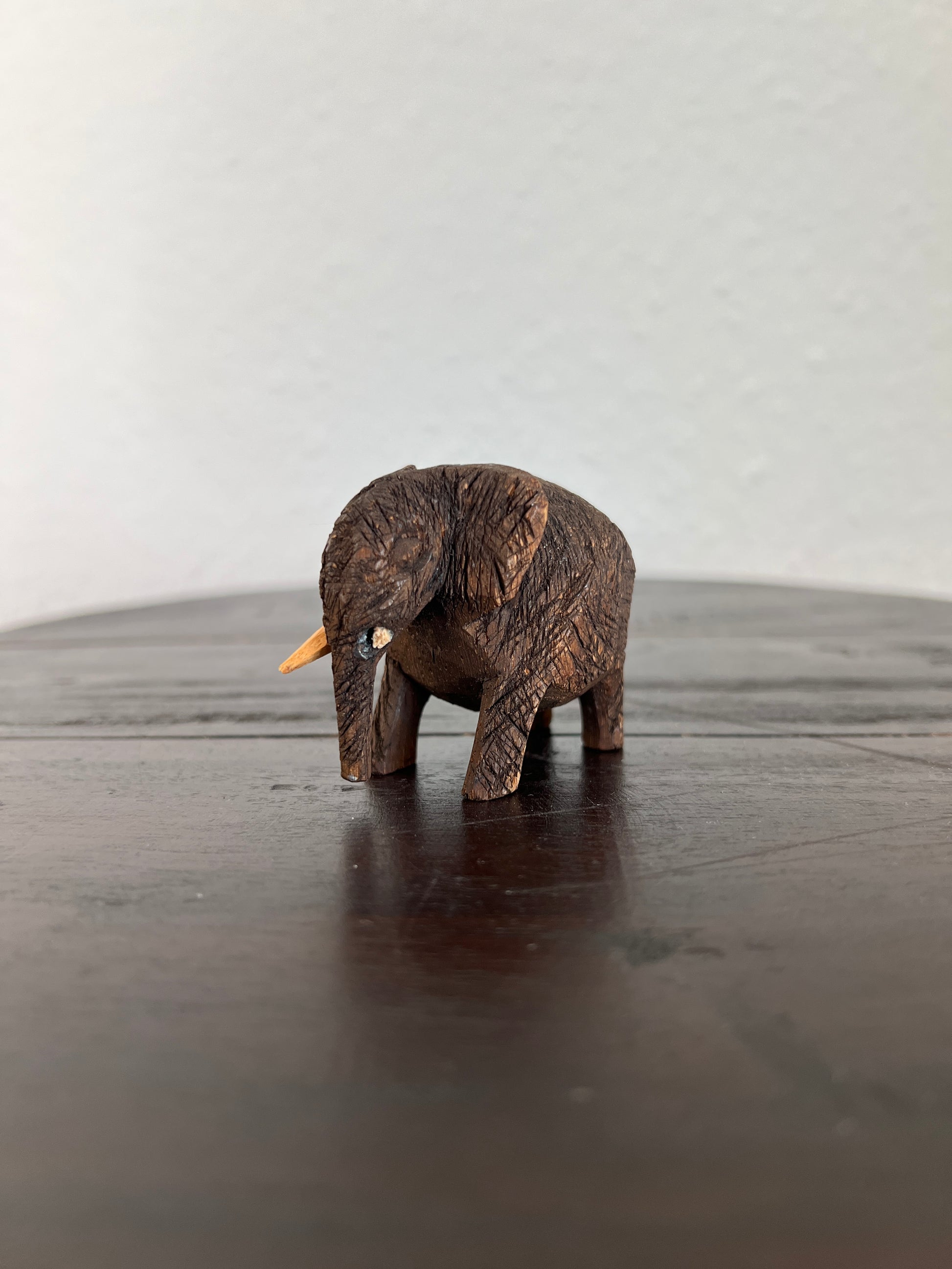 Elefant Holzfigur Braun Klein Vintage Handmade Afrikanisch Skulptur