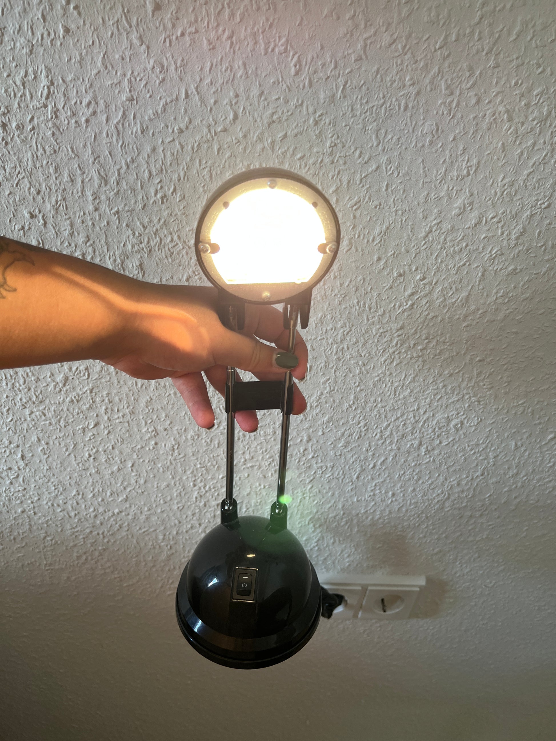 Das Modell zeichnet sich durch seine minimalistische Form, den halbrunden Schirm und den kompakten, funktionalen Aufbau aus, typisch für das moderne IKEA-Design dieser Zeit.